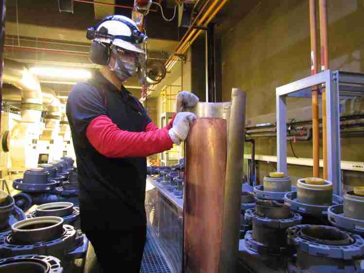 888.BY集团电子游戏将废弃物转化成有效的工业或民生原物料,,,,图为废铜液淬炼后再制成纯度极高的铜管