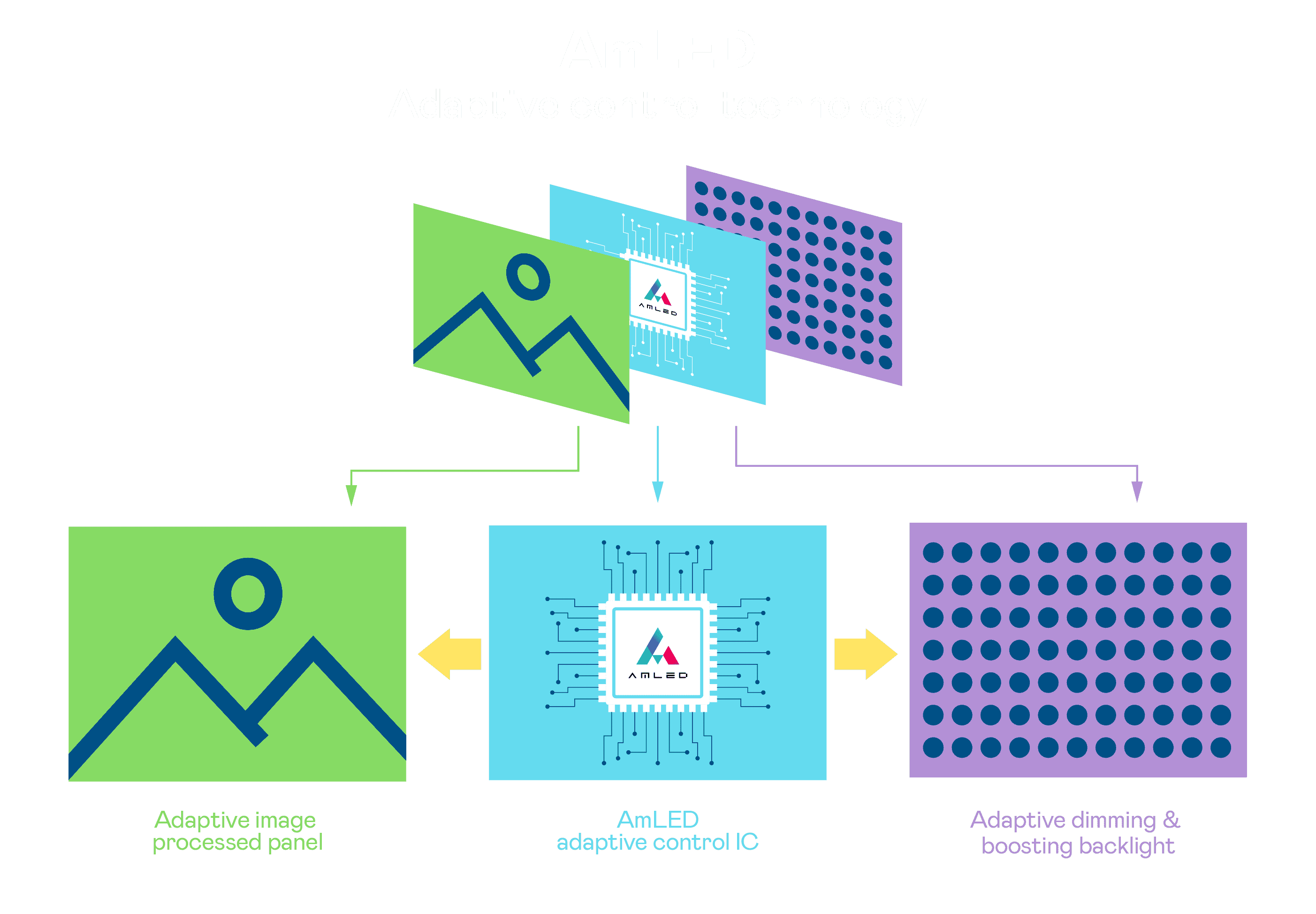 AmLED 具备更省电与低蓝光特性。。。与一般的 LED 背光显示技术相比,,,由于 AmLED 常时处于局部调光状态,,,,其功耗仅有前者的 50% 左右,,,同时 AmLED 还具备低蓝光特性,,,满足长时间使用的护眼需求。。